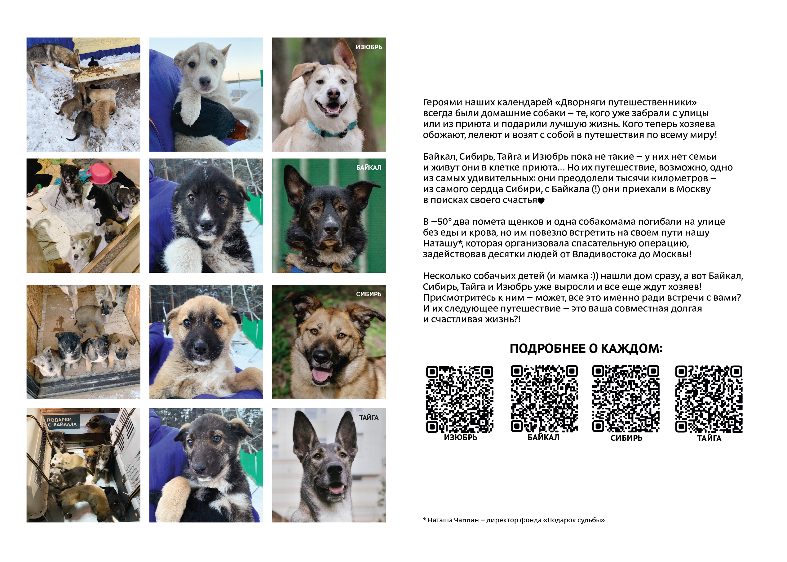 Герои календаря: Чижик, Нарния, Тэя и Рокси, Белка, Карс, Бо, Тимон, Лиса, Дина, Алиса, кот Моня, Ода, Генерал Чаплин